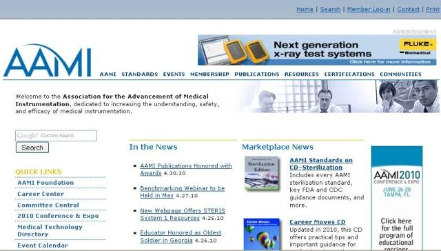Association for the Advancement of Medical Instrumentation (AAMI) Screenshot